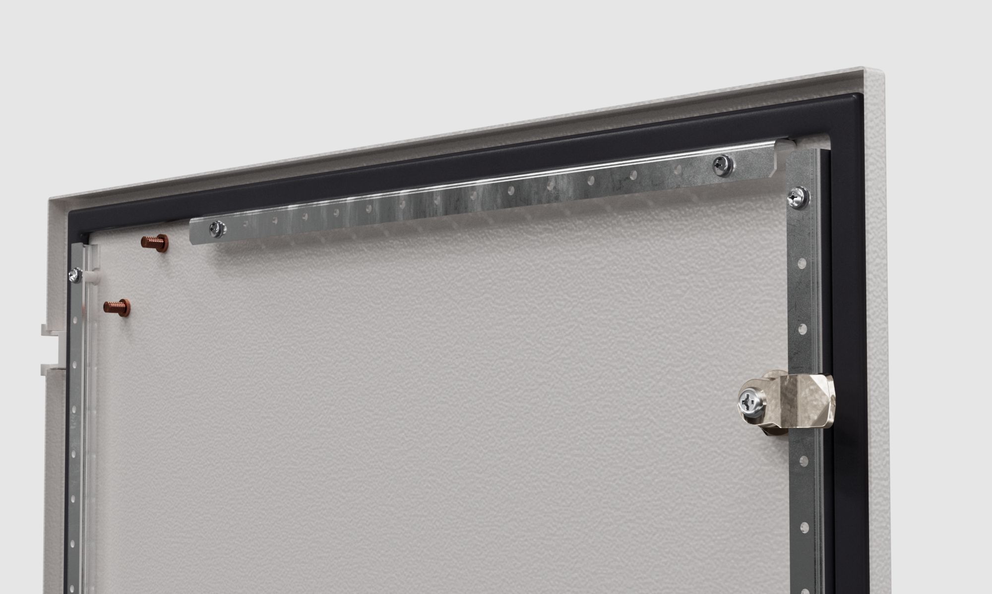 Yes – for compact enclosures, robust corrosion‑resistant locks are used, suitable even for marine environments. There are also plinths, reinforced concrete foundations, beams and mounting brackets, as well as ventilation, heating and air‑conditioning systems for cabinets.